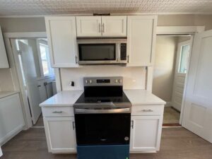 Carrara Quartz Kitchen – Acton, MA This kitchen in Acton, MA features elegant Carrara quartz countertops, offering the classic beauty of marble with the durability and low maintenance of engineered stone.