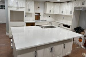 Premium Quartz Countertop Installation For this project in Clinton, we installed a stunning quartz countertop paired with a handmade under-mounted stainless steel sink. Precision craftsmanship ensured a seamless fit, enhancing both the functionality and aesthetic appeal of the space. Whatsapp Envelope