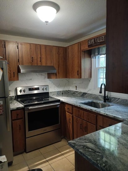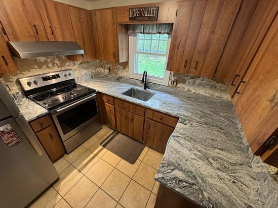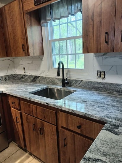 This project involved the installation of a Silver Cloud granite kitchen in Halifax. Initially, the existing countertops were removed and the base cabinets were prepared to ensure proper leveling. Next, the granite surfaces were custom fabricated, including precise sink cutouts and edge detailing. Additionally, a tile backsplash was installed to protect the wall areas and complement the new stone surfaces. As a result, the kitchen now features durable materials and a consistent finish that enhances both usability and appearance.
