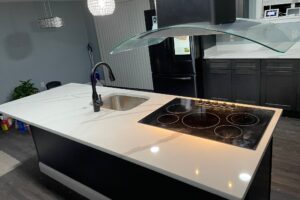 Stylish Calacatta Cosmos Kitchen Upgrade This kitchen in Brockton features stunning Calacatta Cosmos countertops with a matching 4” backsplash, a sleek stainless steel under-mount sink, and a precise cooktop cutout. A perfect blend of luxury, functionality, and custom detail. Whatsapp Envelope