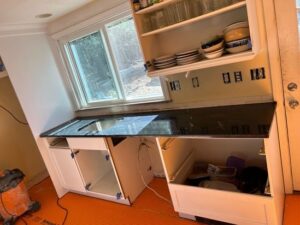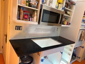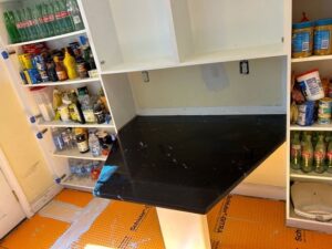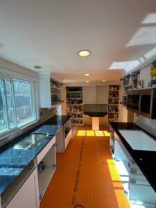 Installed in Stow, MA, this kitchen showcases the dramatic veining of Via Láctea granite, delivering a bold and contemporary focal point with lasting durability.